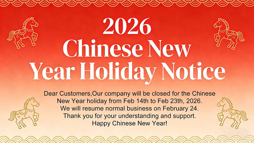 Thank you for your continued trust and support over the past year. The 2026 Lunar New Year (Year of the Horse) is approaching. To accommodate national holidays and our company's business arrangements, we hereby inform you of the following holiday and related business arrangements to ensure smooth cooperation between our two parties.